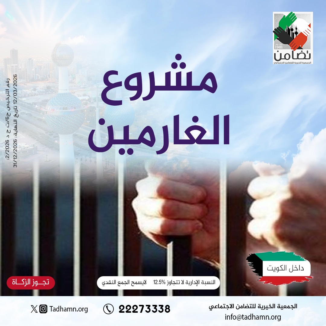 وصف المشروع: مشروع تكافلي يسعى إلى مساعدة الغارمين داخل الكويت عبر سداد ديونهم، وتخفيف الضغوط المالية عنهم وعن أسرهم، ليبدأوا حياة جديدة مستقرة.
