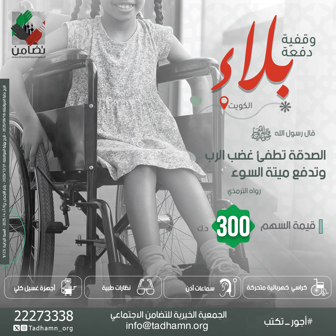 “وقف دفعة بلاء” أحد الأوقاف التي تسعى التضامن الخيرية من خلالها إلى تحقيق أهم مقاصد الوقف وهي الاستدامة وعدم انقطاعه، والتمكين، وتحقيق الكفاية وسد الحاجات.
